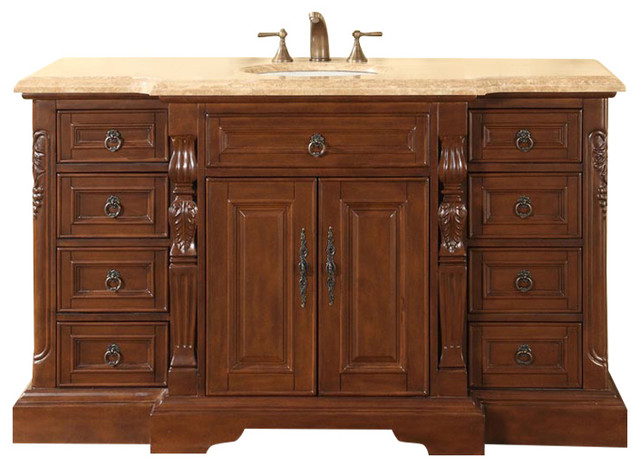 60" Traditional Single Sink Bathroom Vanity, Travertine
