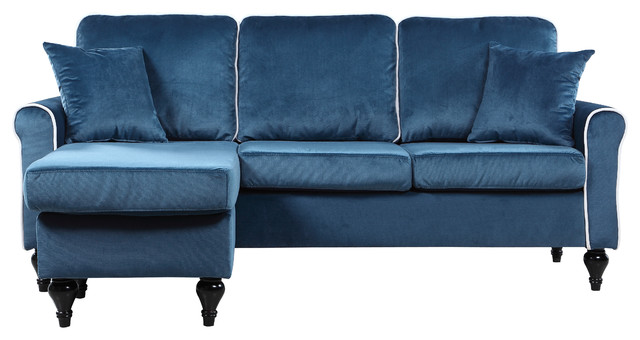Traditional Small Space Blue Velvet Sectional Sofa with