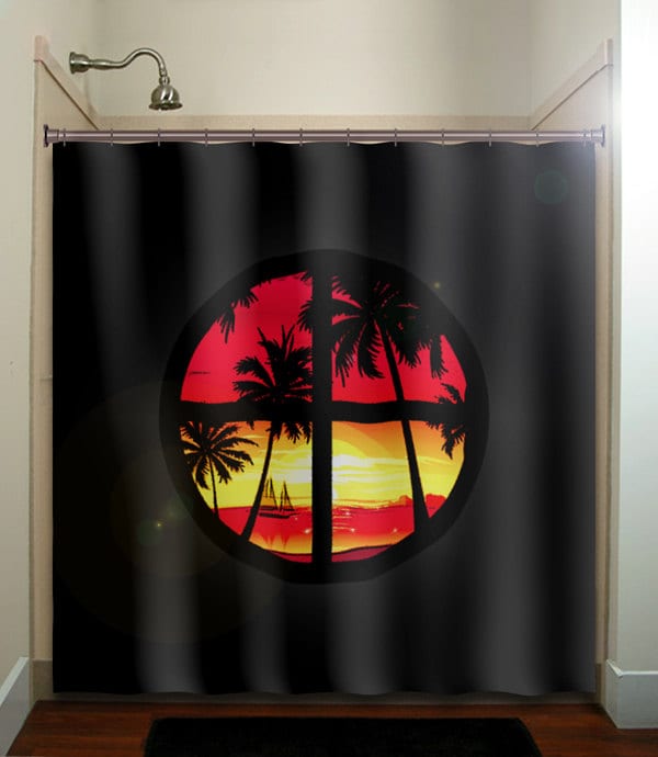 tropical paradise window sunset palm trees shower curtain