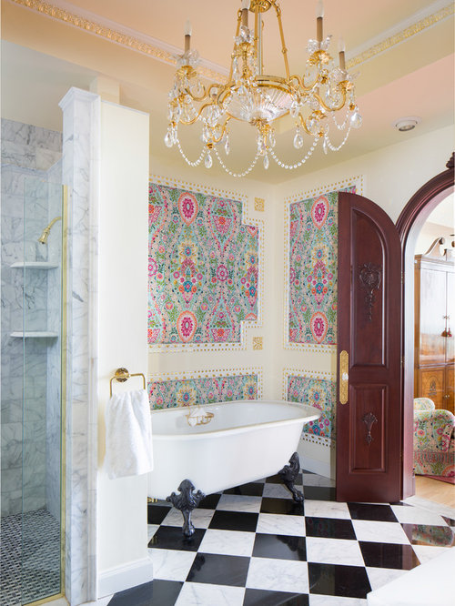 Traditional Victorian Bathroom Decorated With Wallpaper
