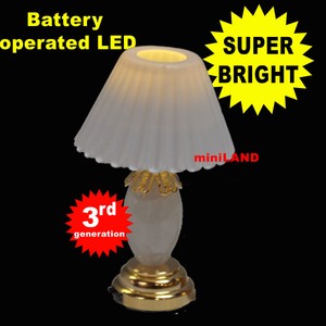 DOLLHOUSE BATTERY OPERATED BRASS TABLE LAMP/ WHITE SHADE