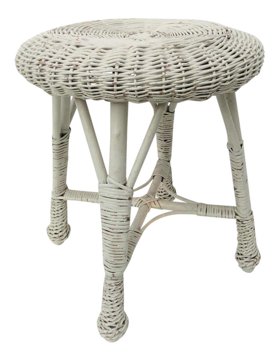 White Wicker Vanity Stool | Chairish