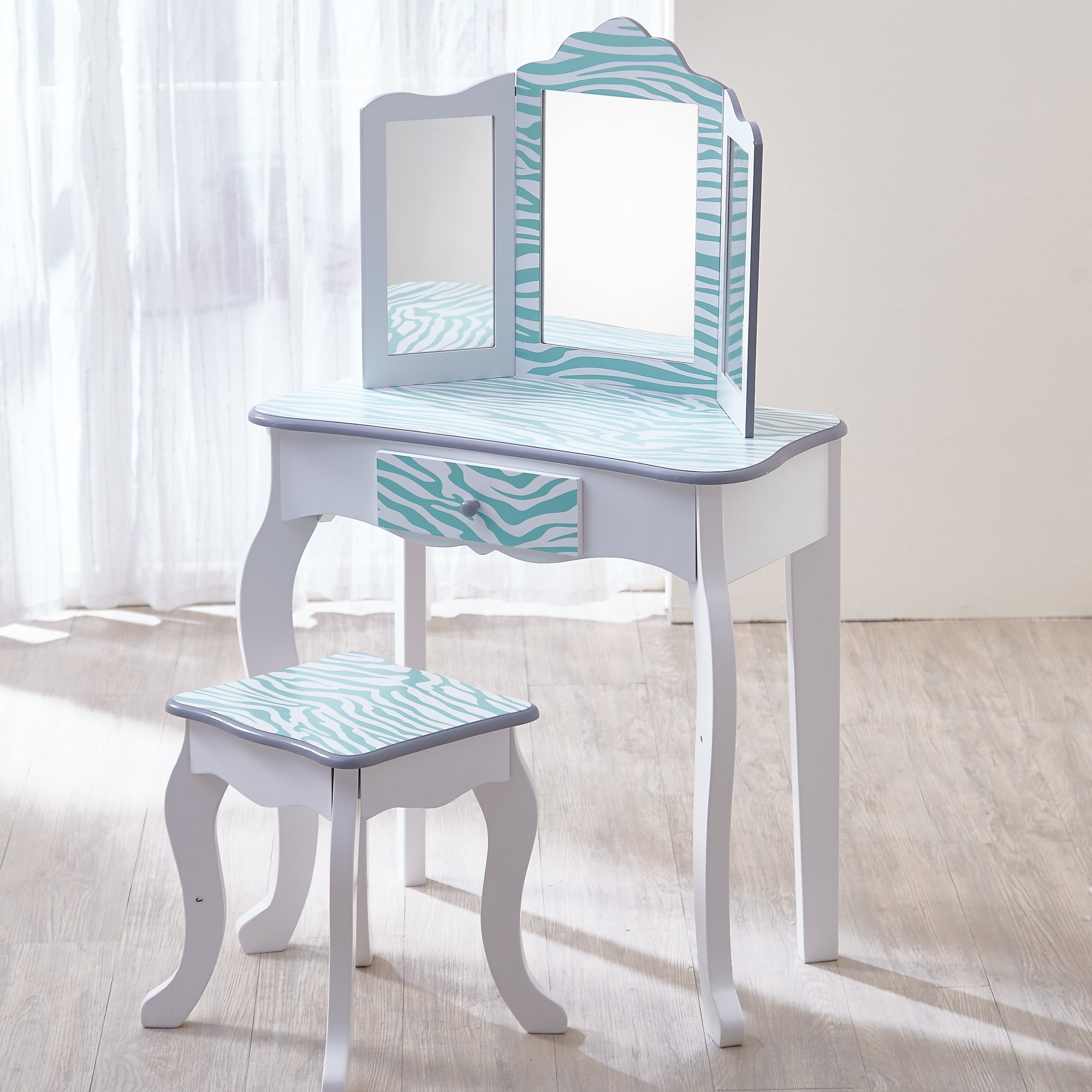 Buy Teamson Kids - Zebra Vanity table & Stool (Blue/White