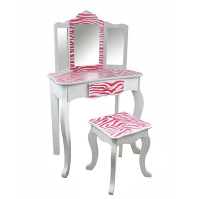 Buy Teamson Kids - Zebra Vanity Table & Stool (Pink/White