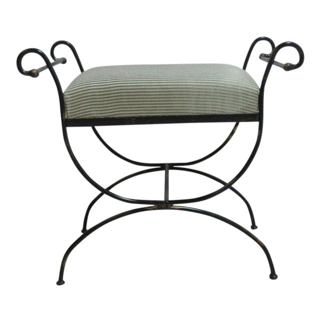 Vintage Wrought Scroll Iron Italian Regency Vanity Stool